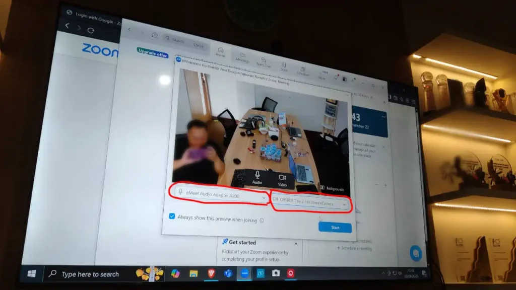3. Pastikan anda menggunakan audio eMeet Audio Adaptor A200 dan Video OBSBOT Tiny 2 Lite StreamCamera