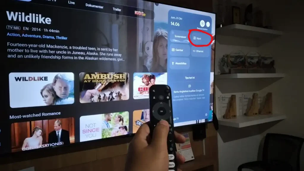 3. Gunakan remote dan tekan tombol panah mengarahkan menu input. JIka sudah klik ok